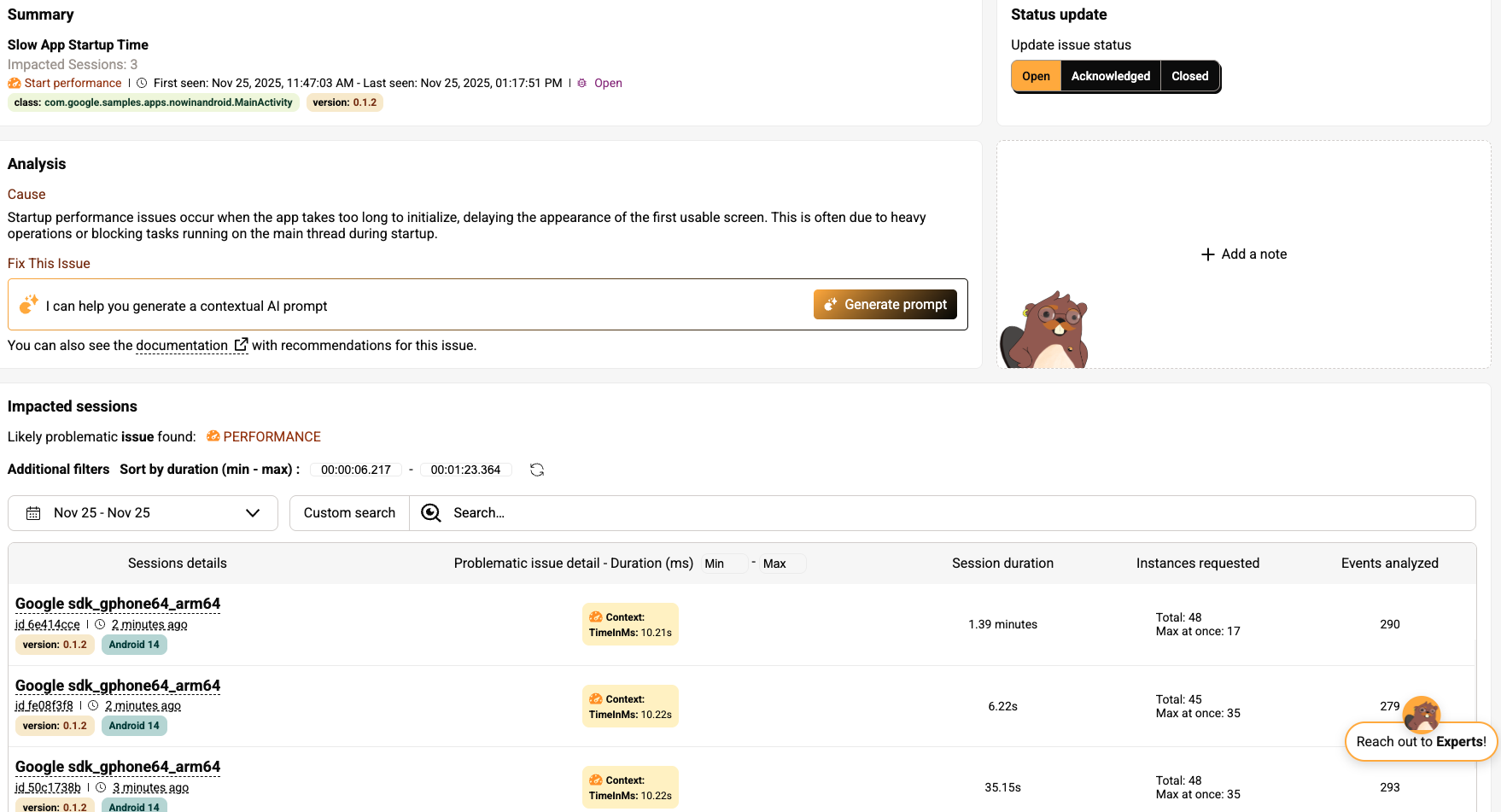 Slow App Startup Time - Click on the AI icon on the right to generate and view the prompt