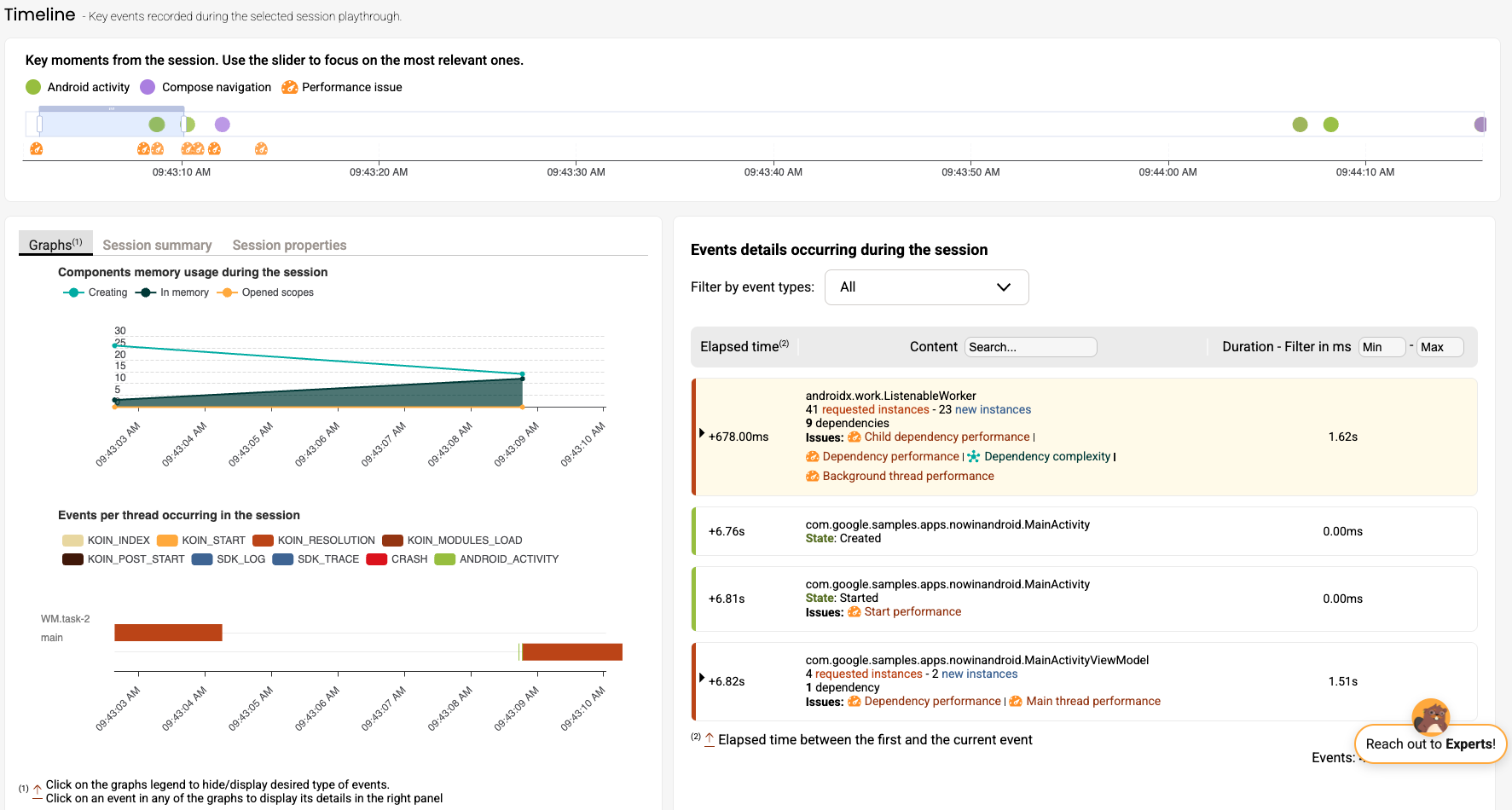 Using the Kotzilla SDK API, you can instrument your component initialization code to add custom logs, measure execution time, and capture contextual data for deeper analysis.
